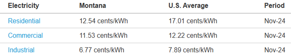 Montana ranks 14th lowest for electricity rates-4th lowest for residential electricity rates.